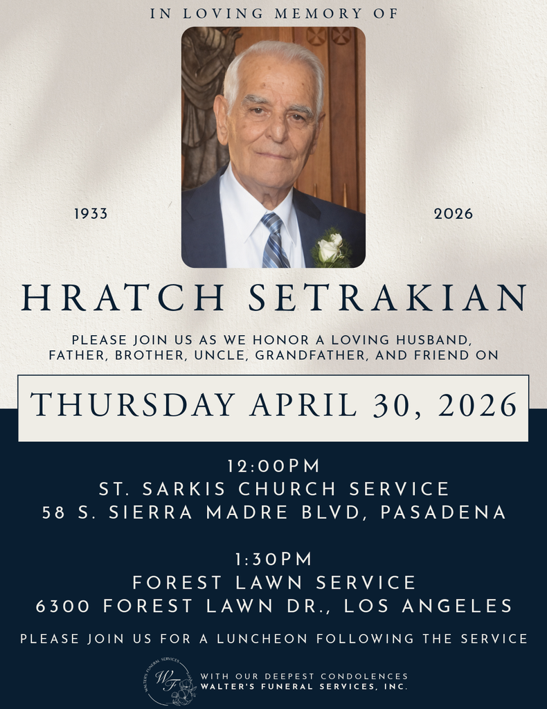 To order memorial trees or send flowers to the family in memory of Hrach Leon Setrakian, please visit our flower store.
